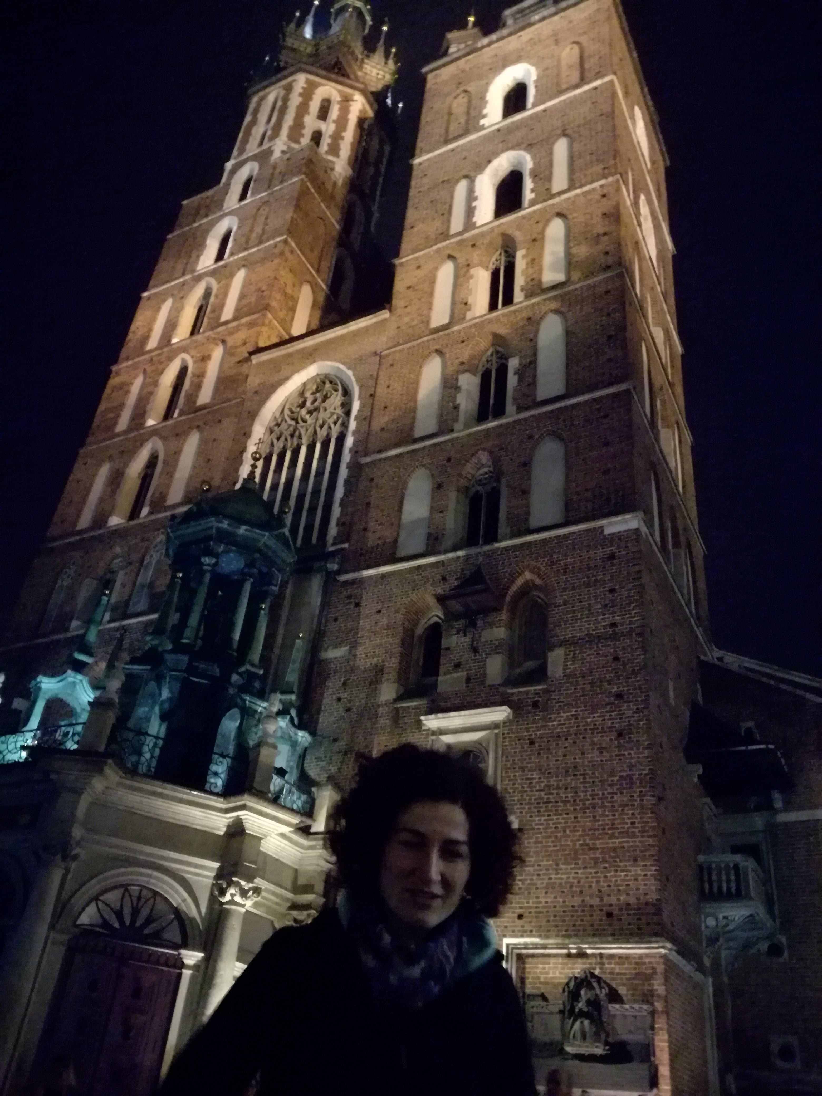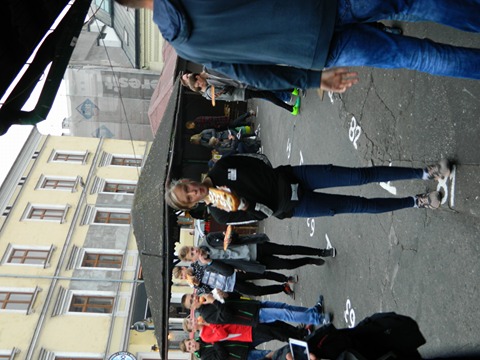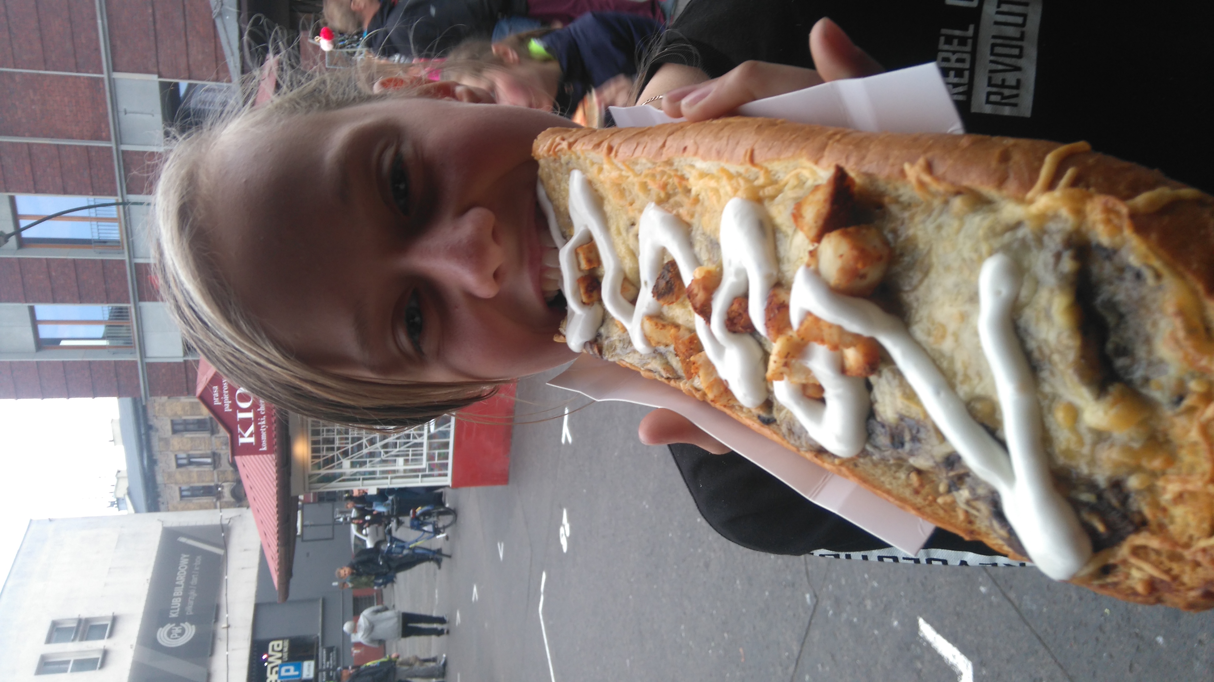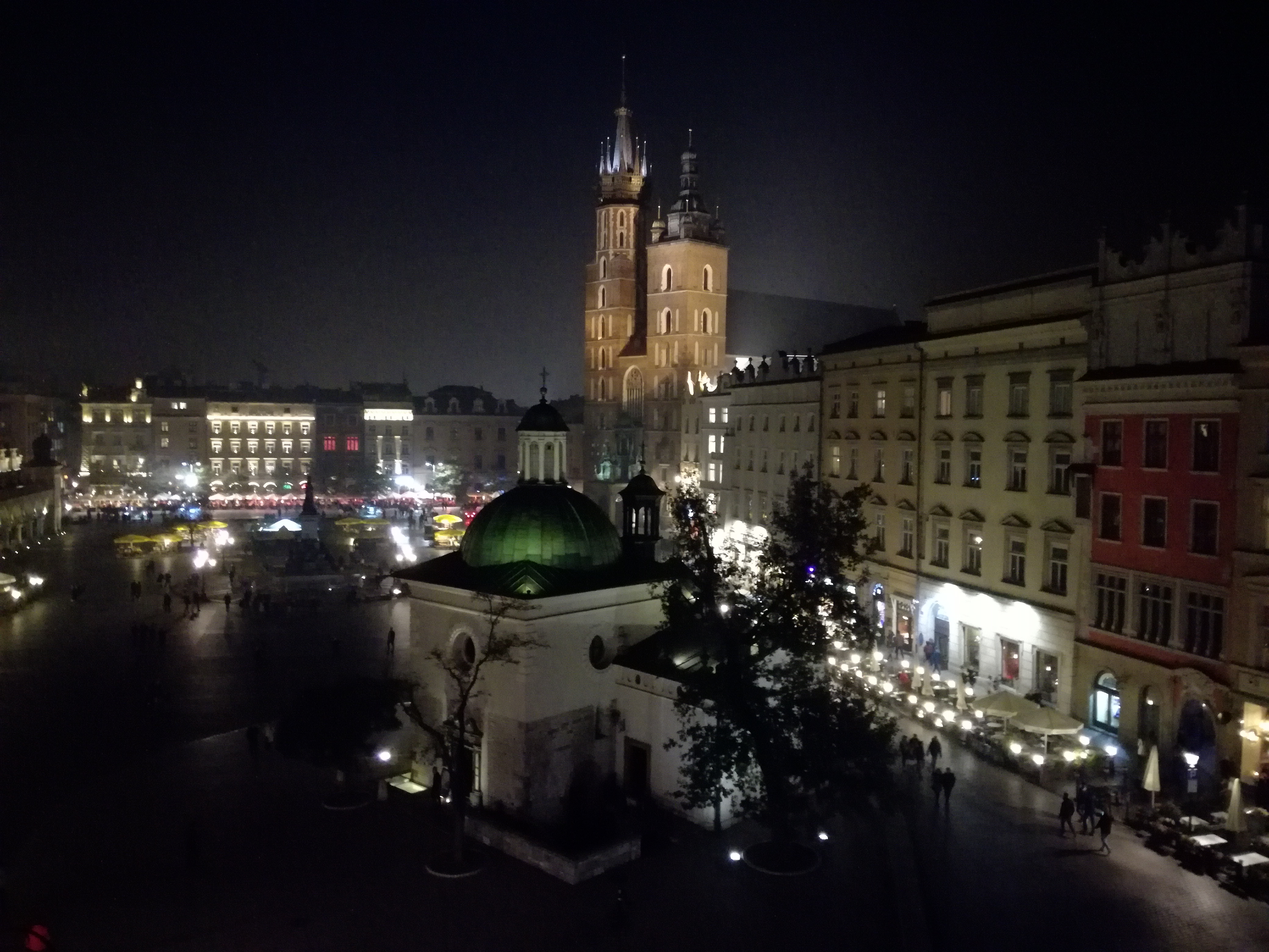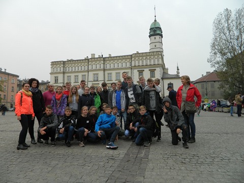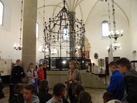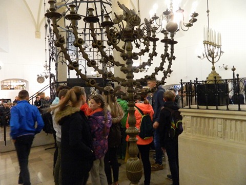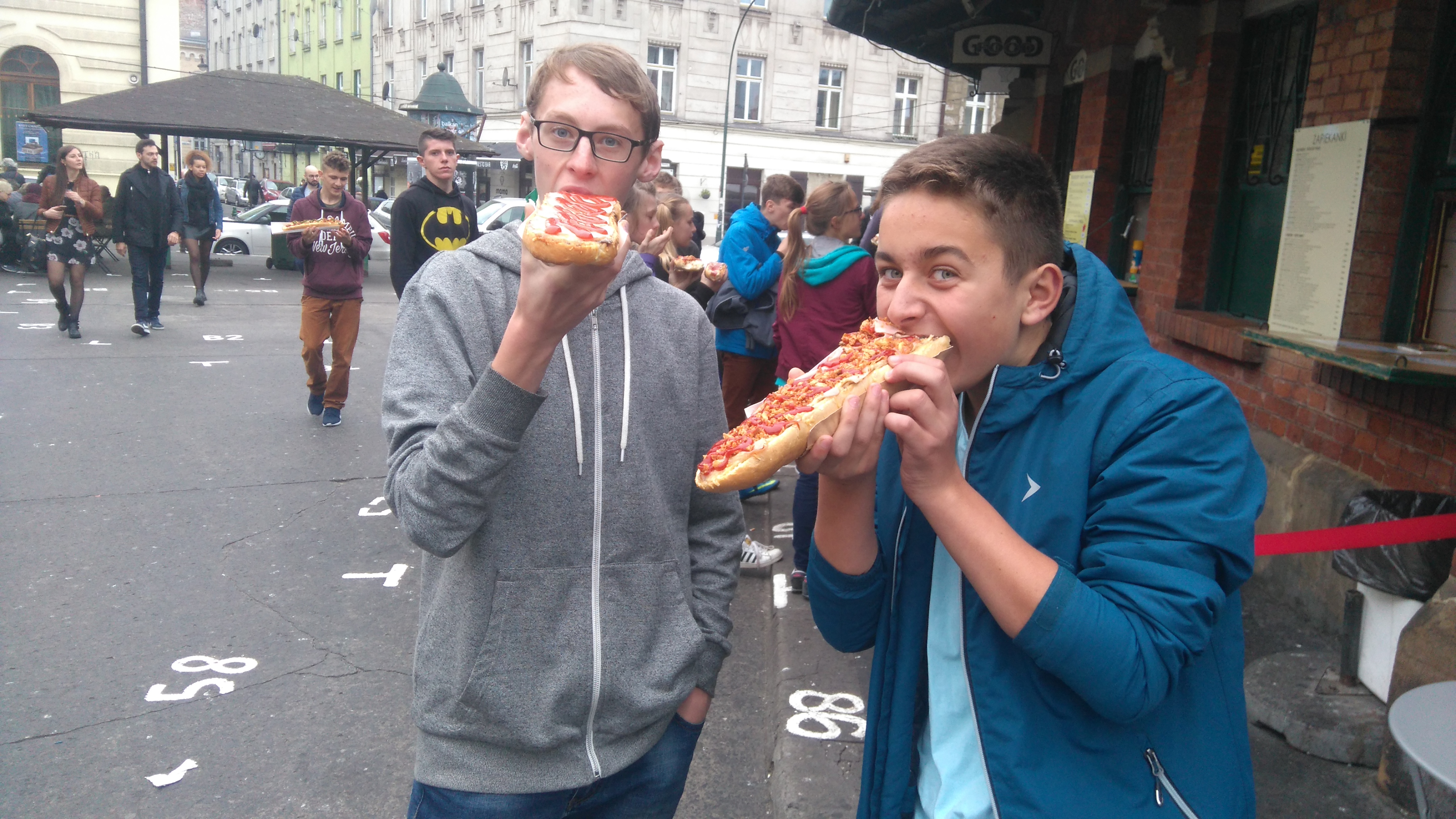 Ostatniego dnia naszej wycieczki udaliśmy się do Krakowa. Pierwszym przystankiem na naszej trasie był Kopiec Kościuszki skąd rozciąga się piękna panorama okolicy. Zwiedziliśmy również zabytkowy XIX- wieczny fort oraz mieliśmy okazję stanąć „twarzą w twarz” z najwybitniejszymi Polakami odwiedzając wystawę figur woskowych. Gdy przybyliśmy do Kazimierza czyli żydowskiej dzielnicy Krakowa, podzieliliśmy się na dwie grupy i z przewodnikami udaliśmy się do dawnej synagogi, która dziś pełni funkcję muzeum. Pani przewodnik opowiedziała nam o życiu codziennym ortodoksyjnych Żydów o ich strojach, posiłkach, zwyczajach. Następnie przeszliśmy uliczkami tej dzielnicy, zajrzeliśmy na cmentarz i weszliśmy do dawnej synagogi, w której dziś znajduje się restauracja. Pani przewodnik poleciła nam zapiekanki przygotowywane właśnie w tej dzielnicy. Były ogromne i pyszne! Wszystkim smakowały. Wieczorem udaliśmy się na niedzielną mszę świętą do kościoła Mariackiego. Po zakwaterowaniu w hostelach spotkaliśmy się na rynku aby posłuchać hejnału z Wieży Mariackiej. Po tak wyczerpującym, pełnym emocji dniu wszyscy błyskawicznie zasnęli.