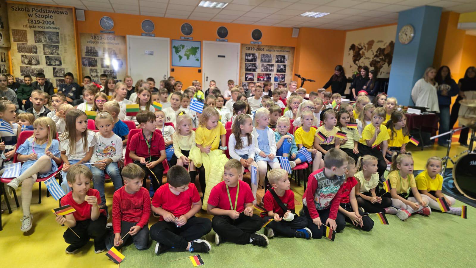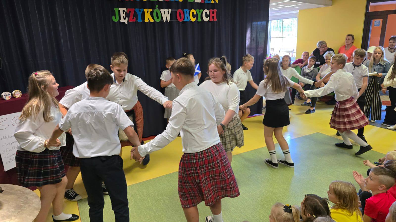 26. września obchodzony jest Europejski Dzień Języków Obcych. Z tej okazji w naszej szkole zorganizowane zostały szkolne obchody tego święta. Miały one na celu ukazanie różnorodności językowo-kulturowej naszego kontynentu oraz korzyści płynących z nauki języków obcych. Tego dnia w naszej szkole było bardzo… europejsko! Wcześniej wszystkie klasy od 0-8 losowały państwa europejskie i otrzymały zadania do wykonania. Przygotowano następujące kraje: Litwę, Szkocję, Grecję, Francję, Niemcy, Czechy, Szwecję oraz Polskę. Obchody święta rozpoczęliśmy od przedstawienia kilku informacji na temat znaczenia nauki języków używanych w Europie. Następne obejrzeliśmy skecz pt.”Zagubiony turysta w Babel”, w którym turysta próbuje zamówić kawę w różnych językach, napotykając zabawne nieporozumienia…