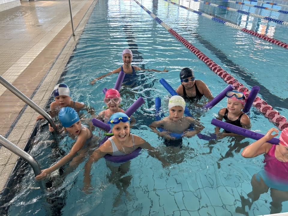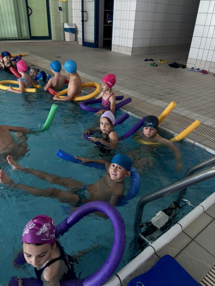 Od września tego roku szkolnego dzieci z klas 1-3 mają kolejną możliwość uczęszczania na zajęcia nauki pływania. Zajęcia odbywają się raz w tygodniu w ramach wychowania fizycznego pod okiem wykwalifikowanej instruktorki i ratowników. Wszyscy są zgodni, że pływanie to samo zdrowie. Doskonale wpływa na kształtowanie odpowiedniej sylwetki, wzmacnia kondycję i umiejętności radzenia sobie w trudnych sytuacjach. Ćwiczenia w wodzie są doskonałą zabawą, relaksują zarówno fizycznie jak i psychicznie. Bez względu na poziom umiejętności i sprawności fizycznej dzieci bardzo chętnie uczestniczą w zajęciach.