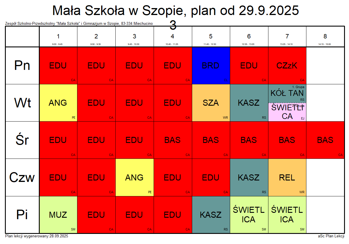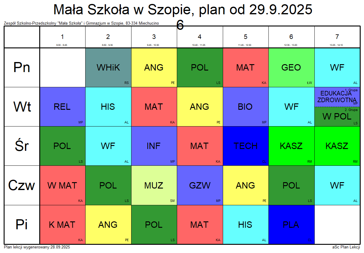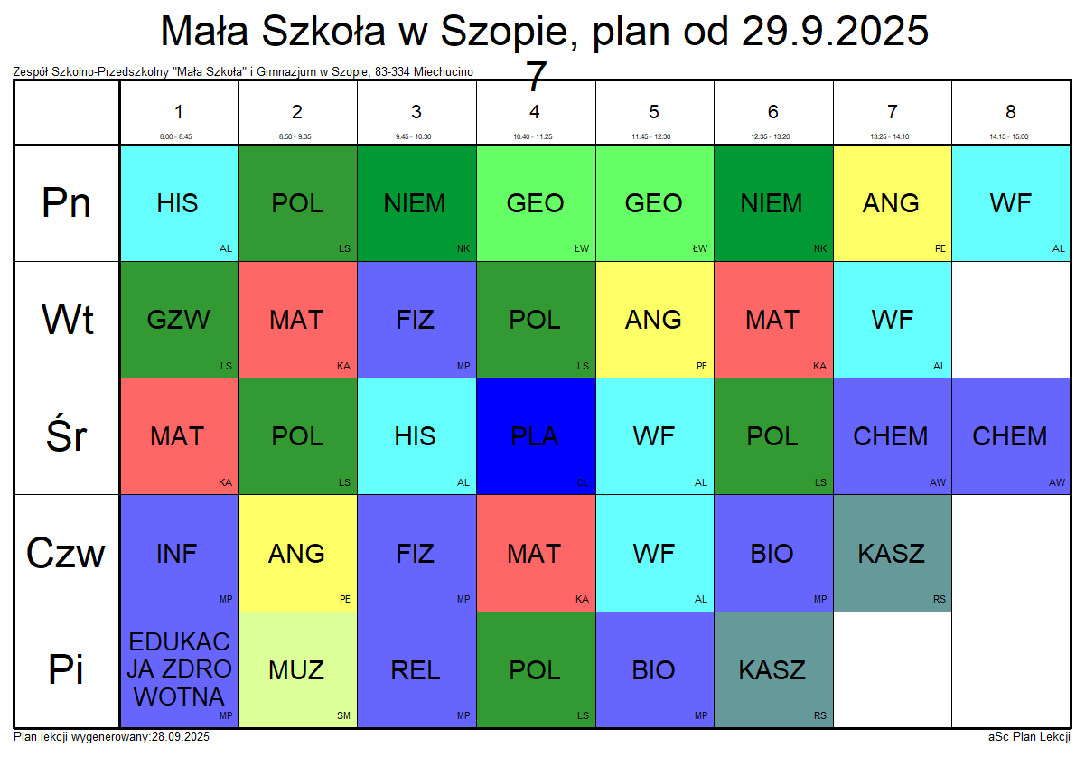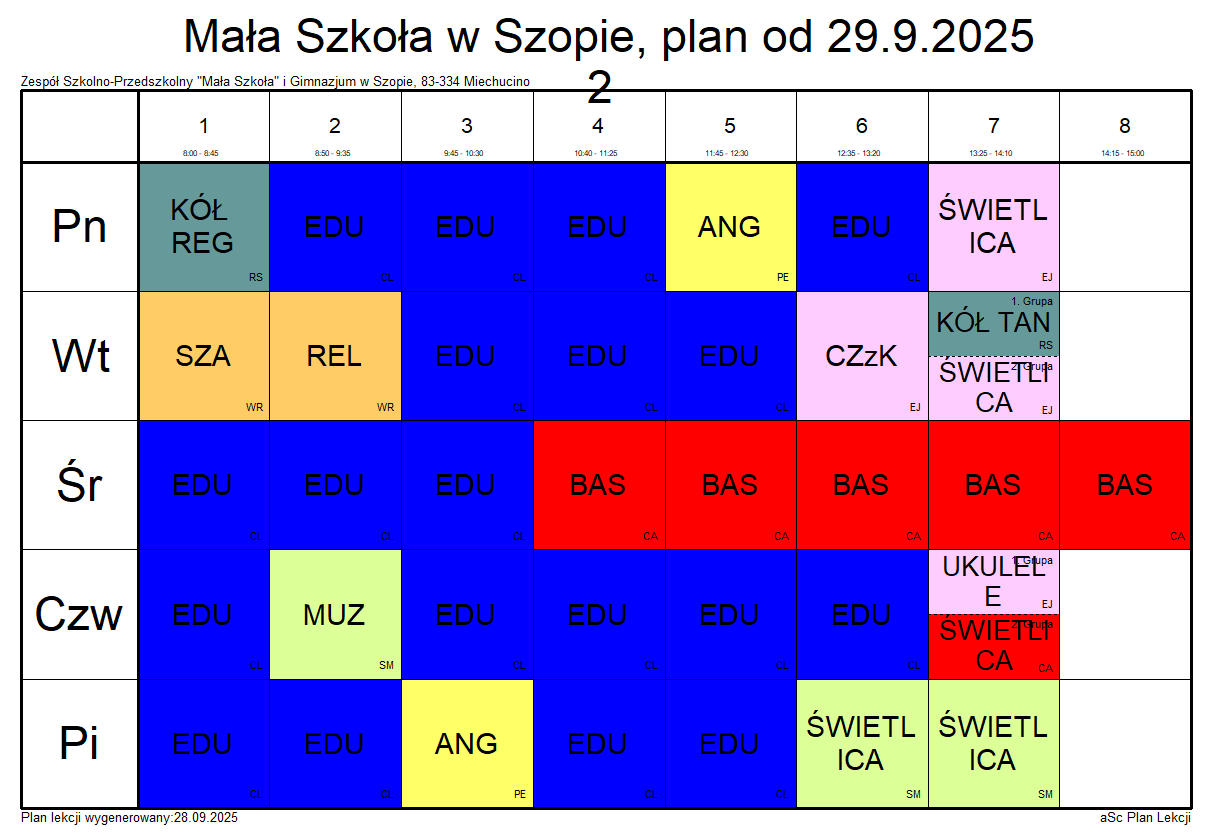 Poniżej plan lekcji obowiązujący od 29.9.2025 r. Plan dowozów bez zmian.