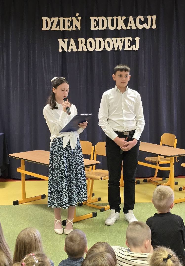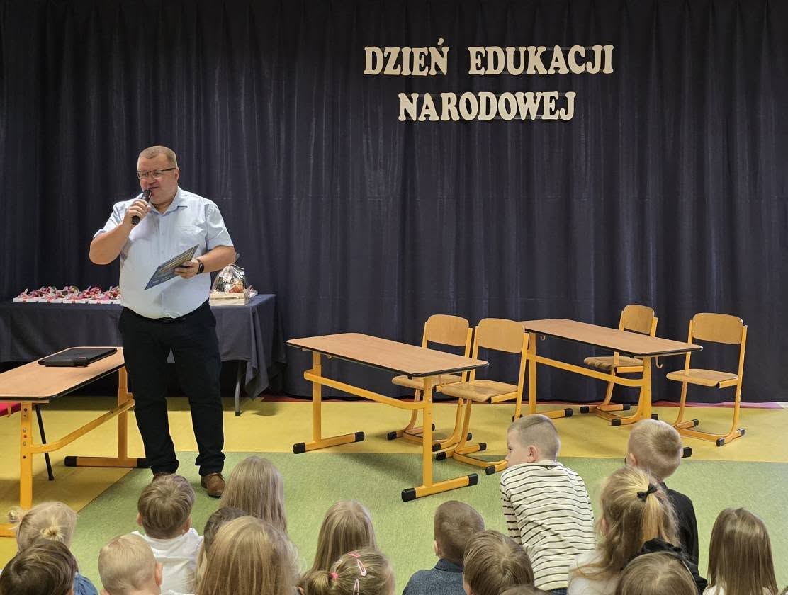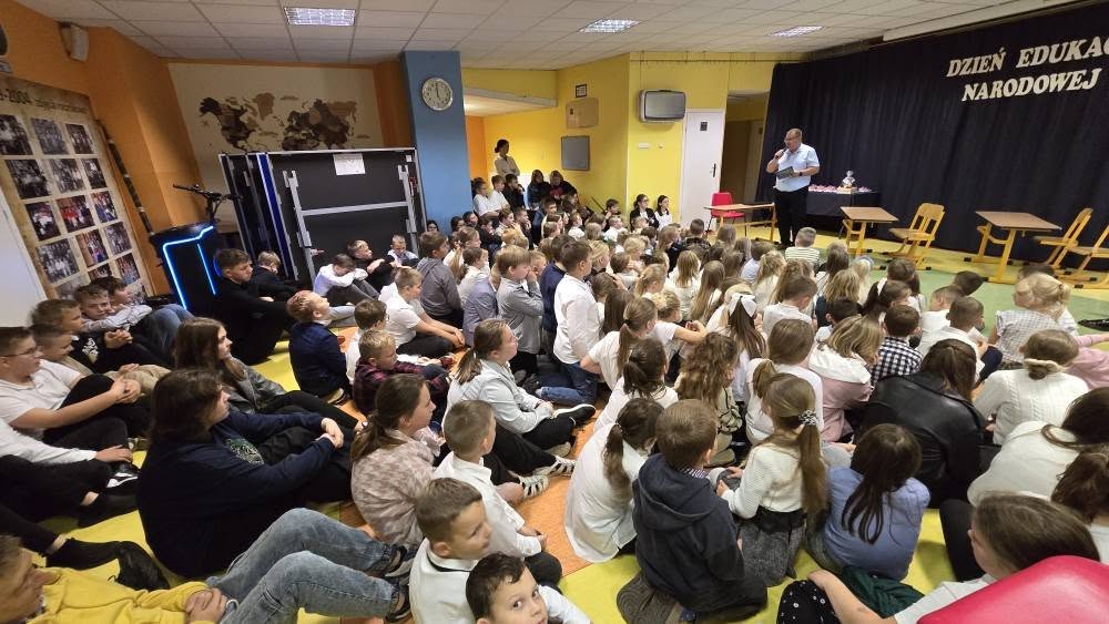 Dzisiaj, po długiej przerwie, w naszej szkole odbył się apel z okazji tzw. Dnia Nauczyciela. Uczniowie z klasy VII przenieśli nas w czasie do chwil, kiedy w szkole nie było komputerów, oceny wpisywano do papierowego dziennika a na przerwach wychowankowie grali w gumę lub klasy… Te czasy przeszły już do lamusa (niestety). Dzisiaj mamy w szkole sporo urządzeń, pomocy dydaktycznych, ciągle uzupełniamy miejsce nauki kolejnymi udogodnieniami. Warto jednak pamiętać, że żadne urządzenie nie zastąpi prawdziwej nauki i zaangażowania ucznia. To, jak wykorzystamy dostępne możliwości, zależy tylko od nas samych. Dlatego tak ważne jest, by wciąż się uczyć i rozwijać. Świat idzie naprzód, a sztuczna inteligencja potrafi coraz więcej — jeśli przestaniemy się starać, może nas łatwo zastąpić. Po przedstawieniu głos zabrał także pan Dyrektor, który w interesujący sposób przybliżył zebranym ciekawostki związane z nauką i o tym, jak jej osiągnięcia przenikają do naszego codziennego życia.