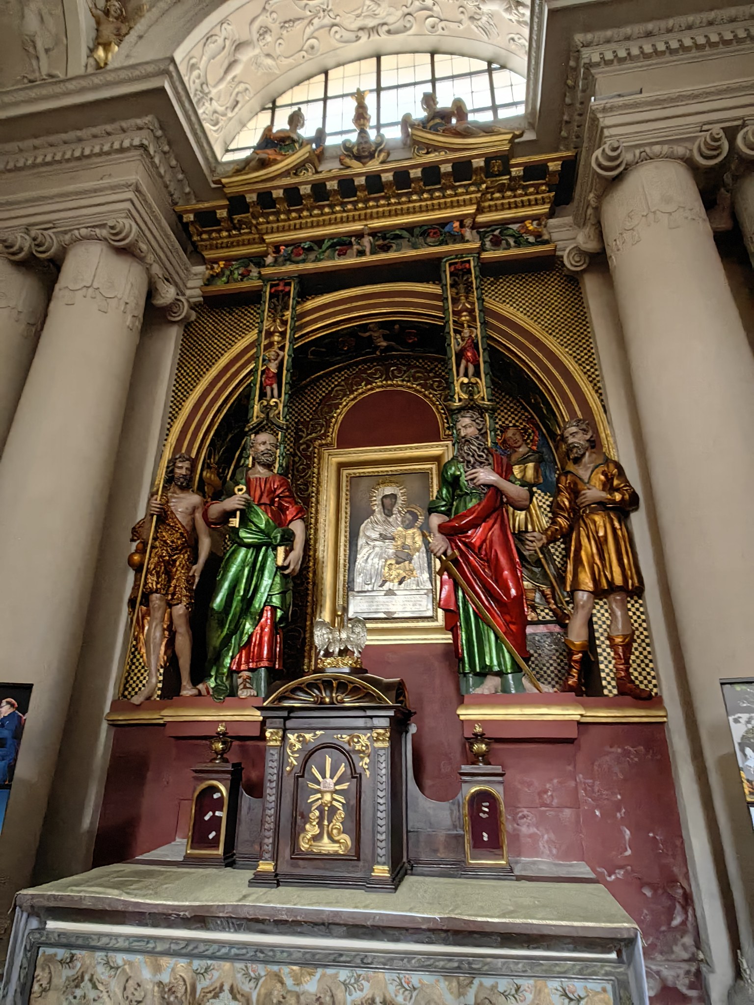 Kolejne 3 h spędziliśmy na spacerze po atrakcjach Kazimierza Dolnego z przewodniczką. Rozpoczęliśmy od kościoła Jana Chrzciciela i Bartłomieja Apostoła z pięknymi drewnianymi organami.