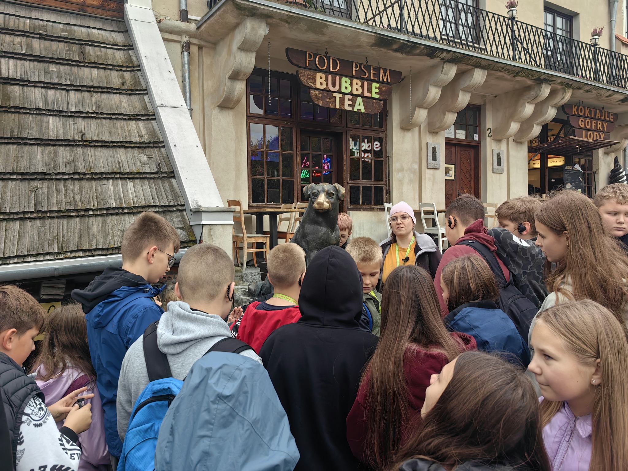 Weszliśmy też na Górę Trzech Krzyży skąd rozpościera się pocztówkowy widok na Wisłę i miejscowość. Zwiedzanie zakończyliśmy na rynku z opowieściami o płaskorzeźbach umieszczonych na kamienicach.