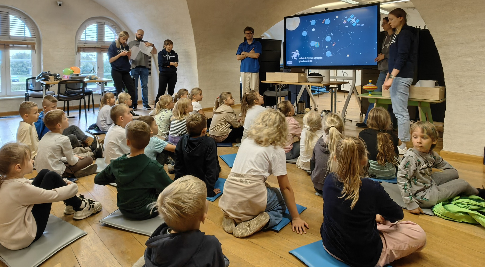 Jak wchodziliśmy na teren Hevelianum akurat nasz astronauta Sławosz udzielał na placu przed obiektem wywiadu – ale my musieliśmy pędzić na umówioną godzinę zajęć.